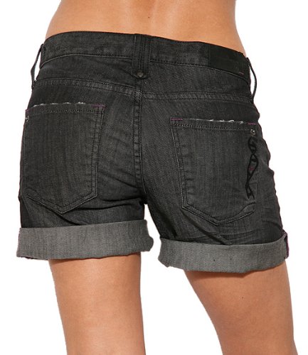 These 5 pocket low-rise boyfriend jean shorts from Genetic Denim feature a dark indigo wash, tone on tone stitching, rips, holes, tears, abrasions, clean back pockets with logo detailing and a button fly closure. - Style: Boyfriend Shorts